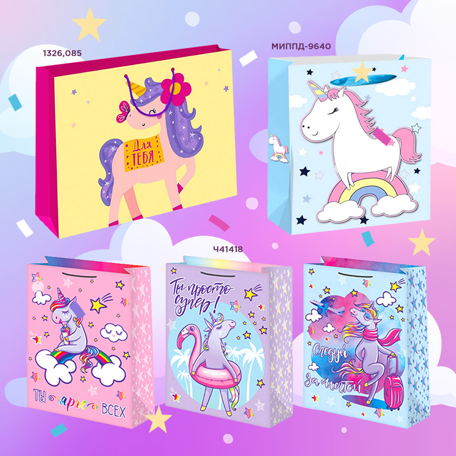 миППД-9640 Пакет Dream cards с мат. лам. 26.4х32.7х13.6см Единорог на радуге